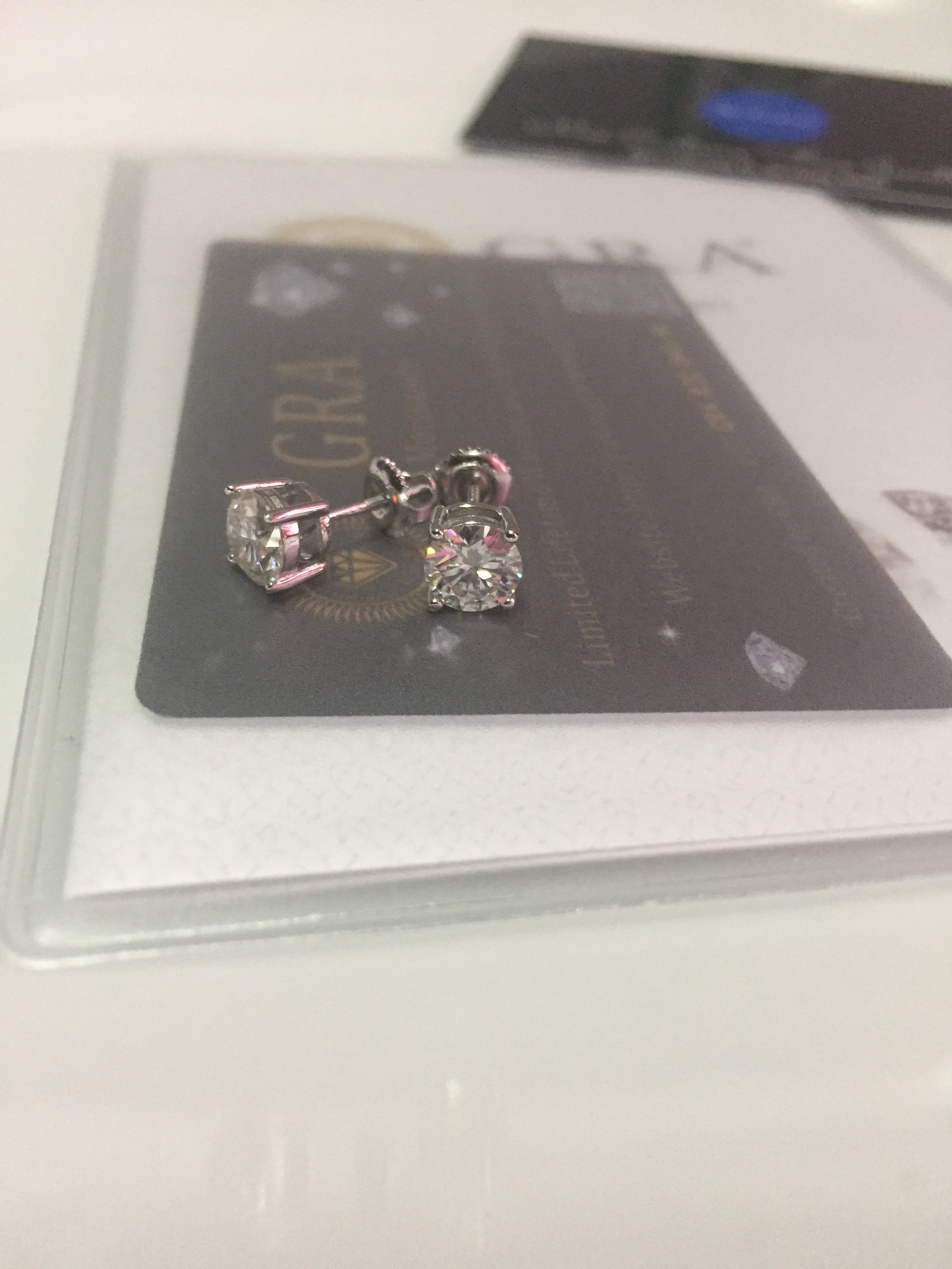 These beautiful studs are 1 carat each and secured by a screw backing and 4 prongs. These studs are the perfect size right between medium and large, at 6.5mm.