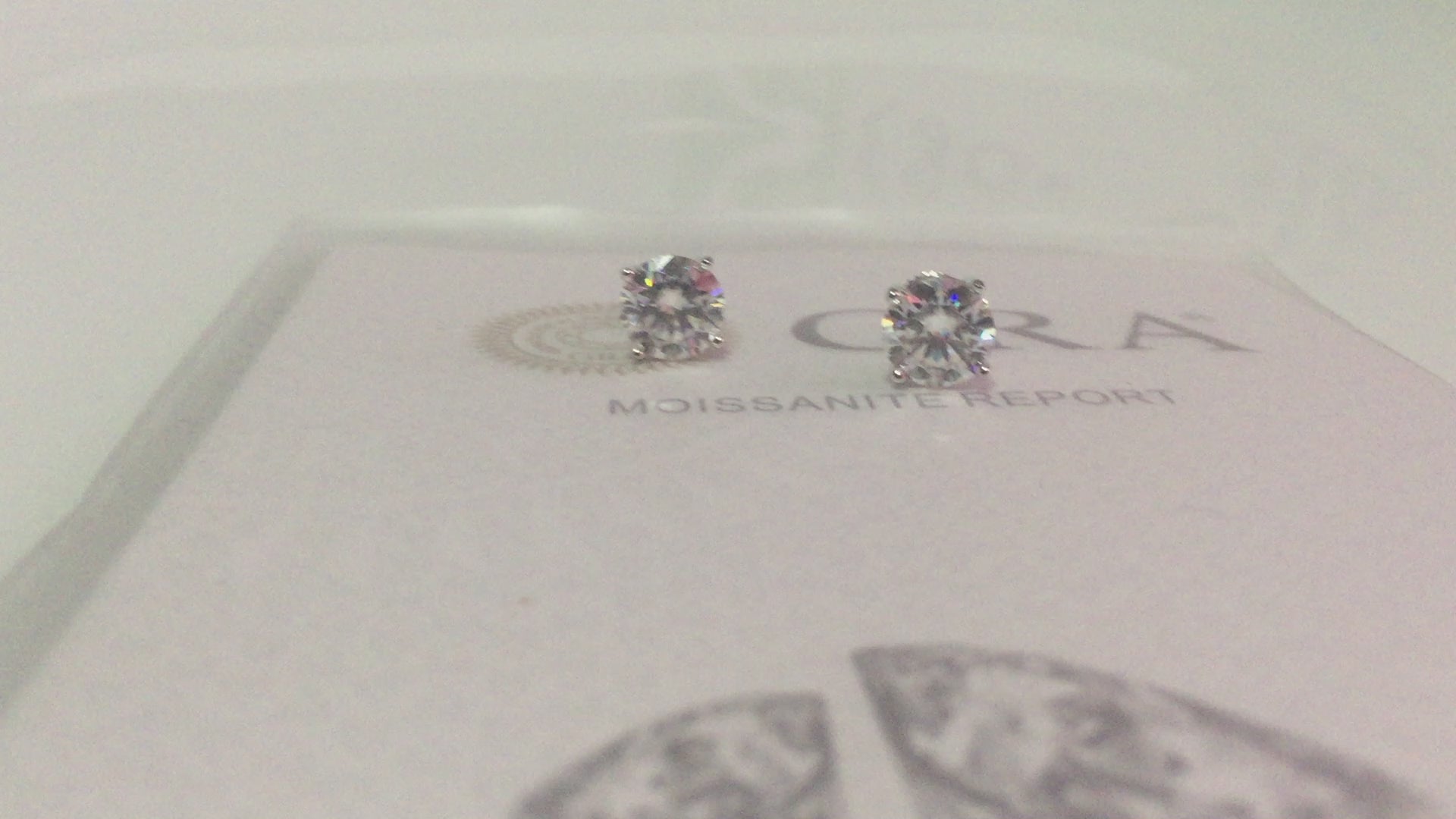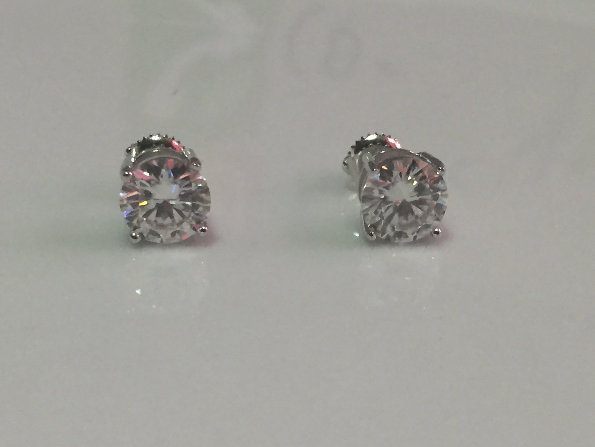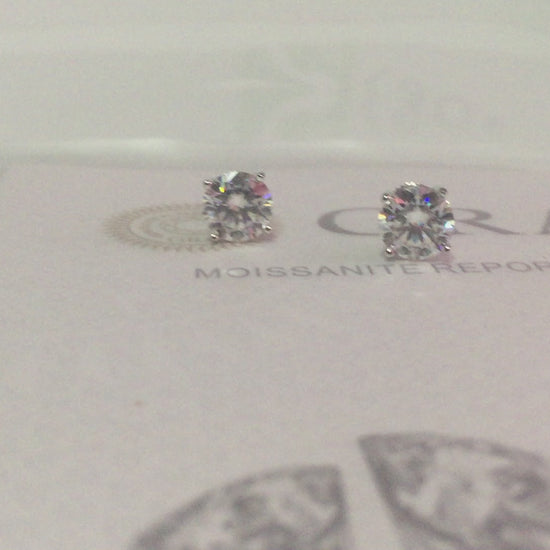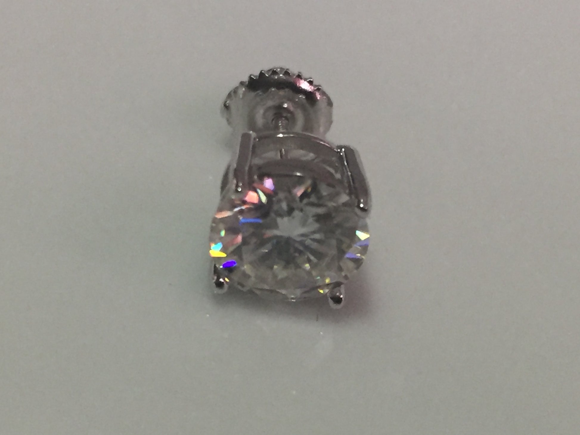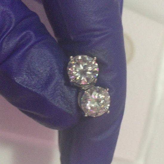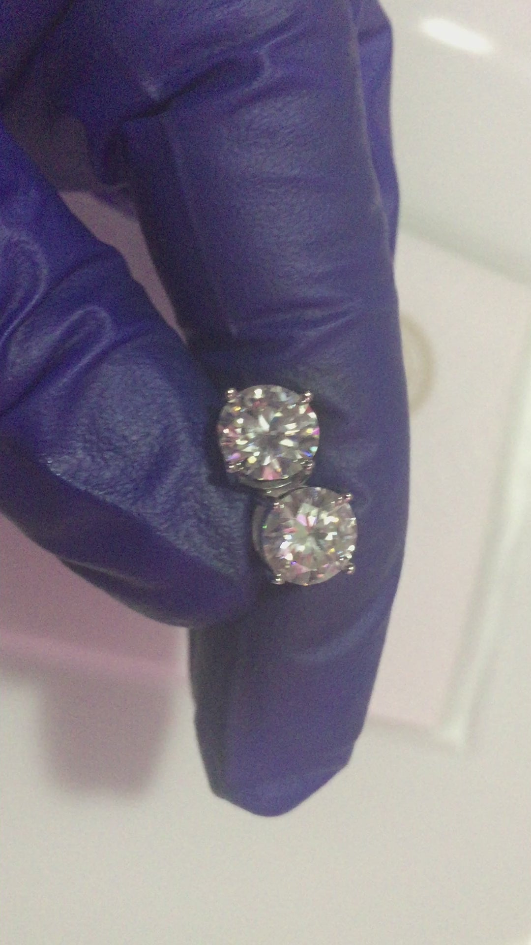 These stud earrings are BIG at 8mm, weighing 2 carats each. With precise cuts and clarity, these studs sparkle and shine like crazy!