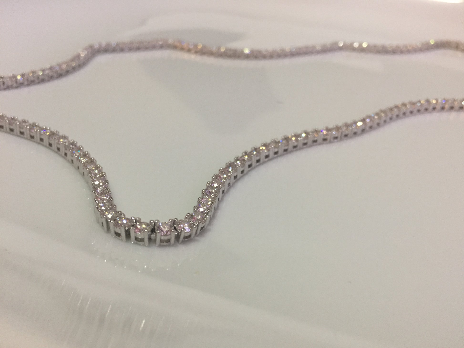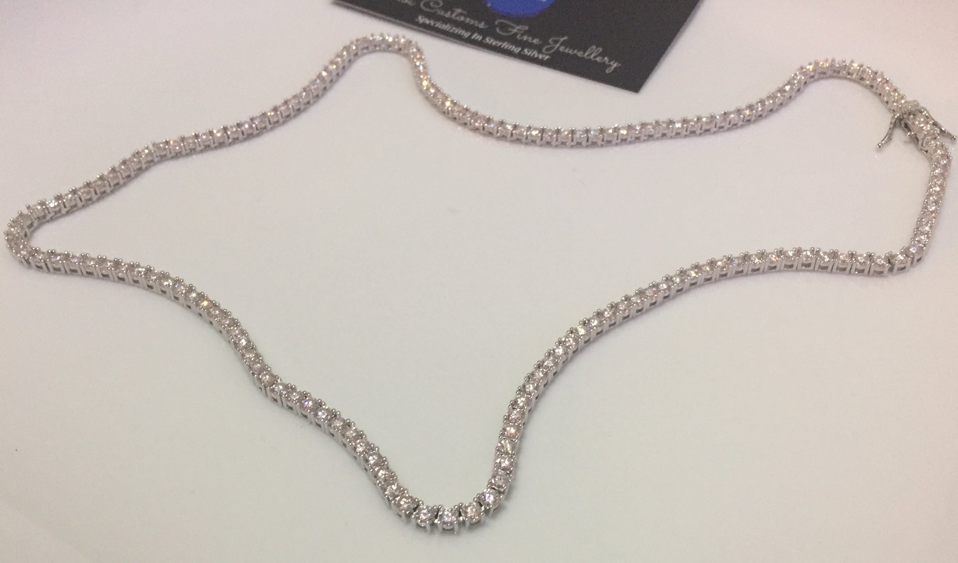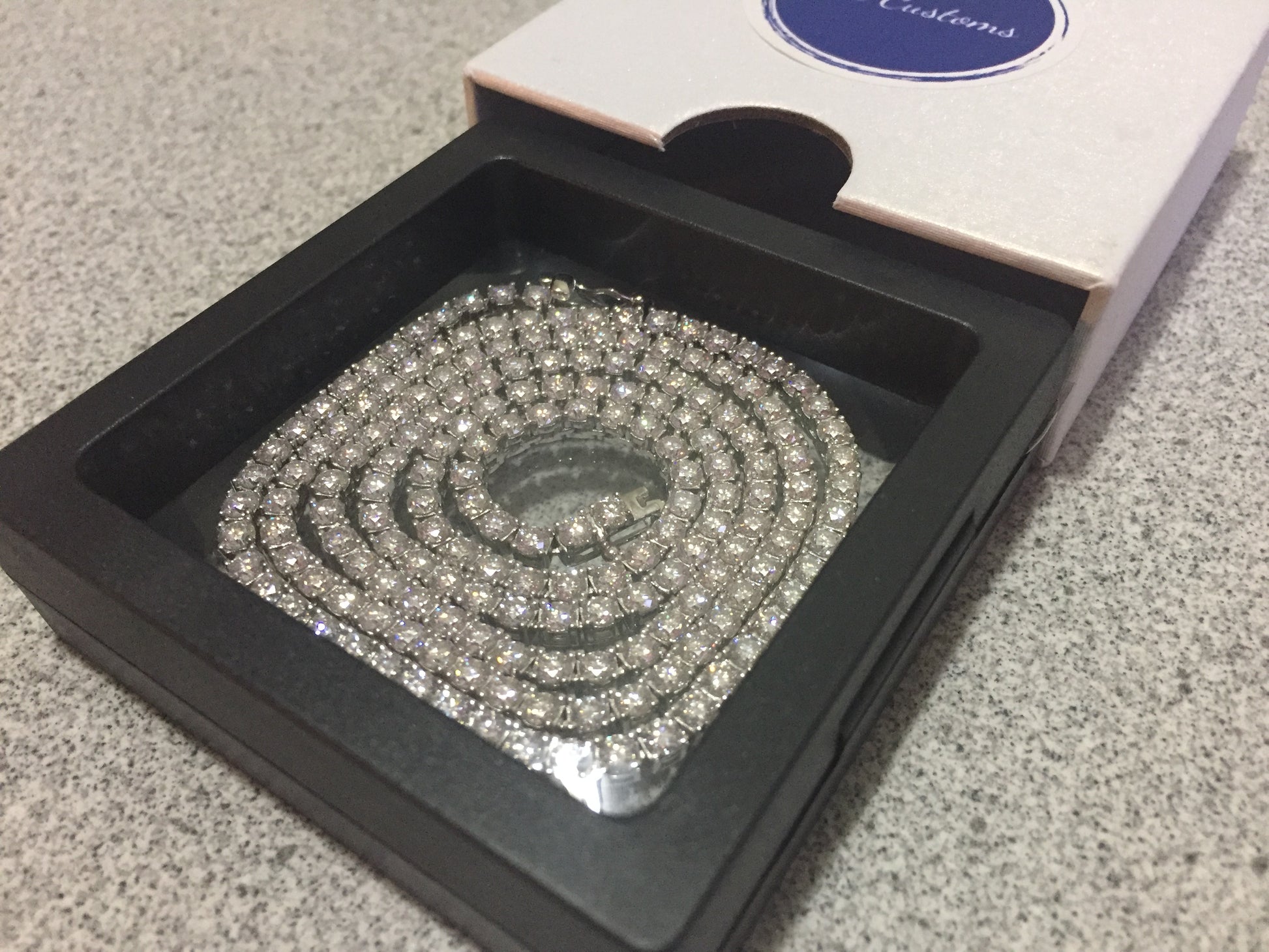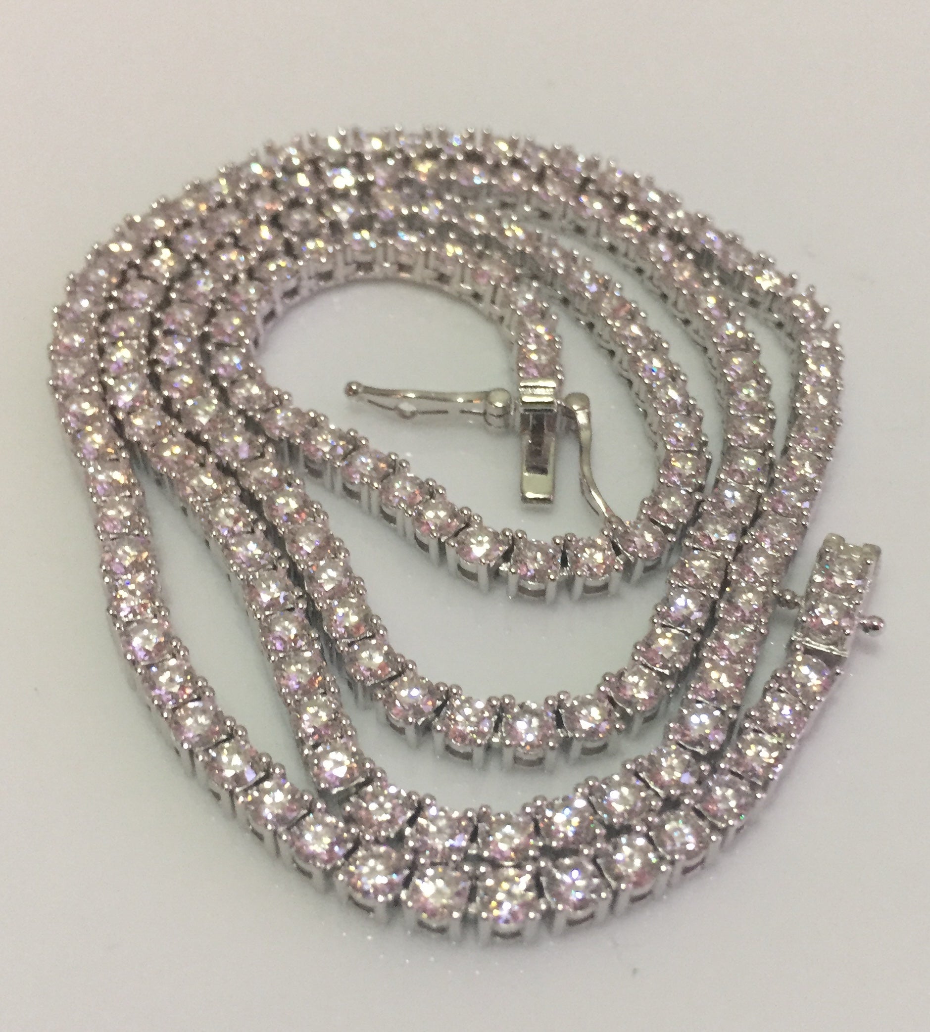 The 3mm tennis chain is known as the standard size, a staple in any jewelry collection. Equipped with a either a single latch or double butterfly clasp, this size is perfect for any gender, even children. Although the 3mm stones aren’t too big, the shine makes these chains stand out in any setting!