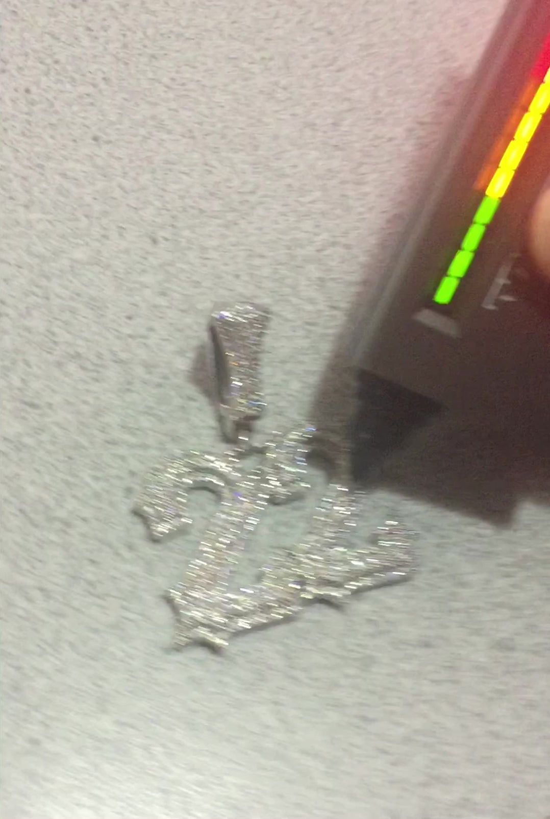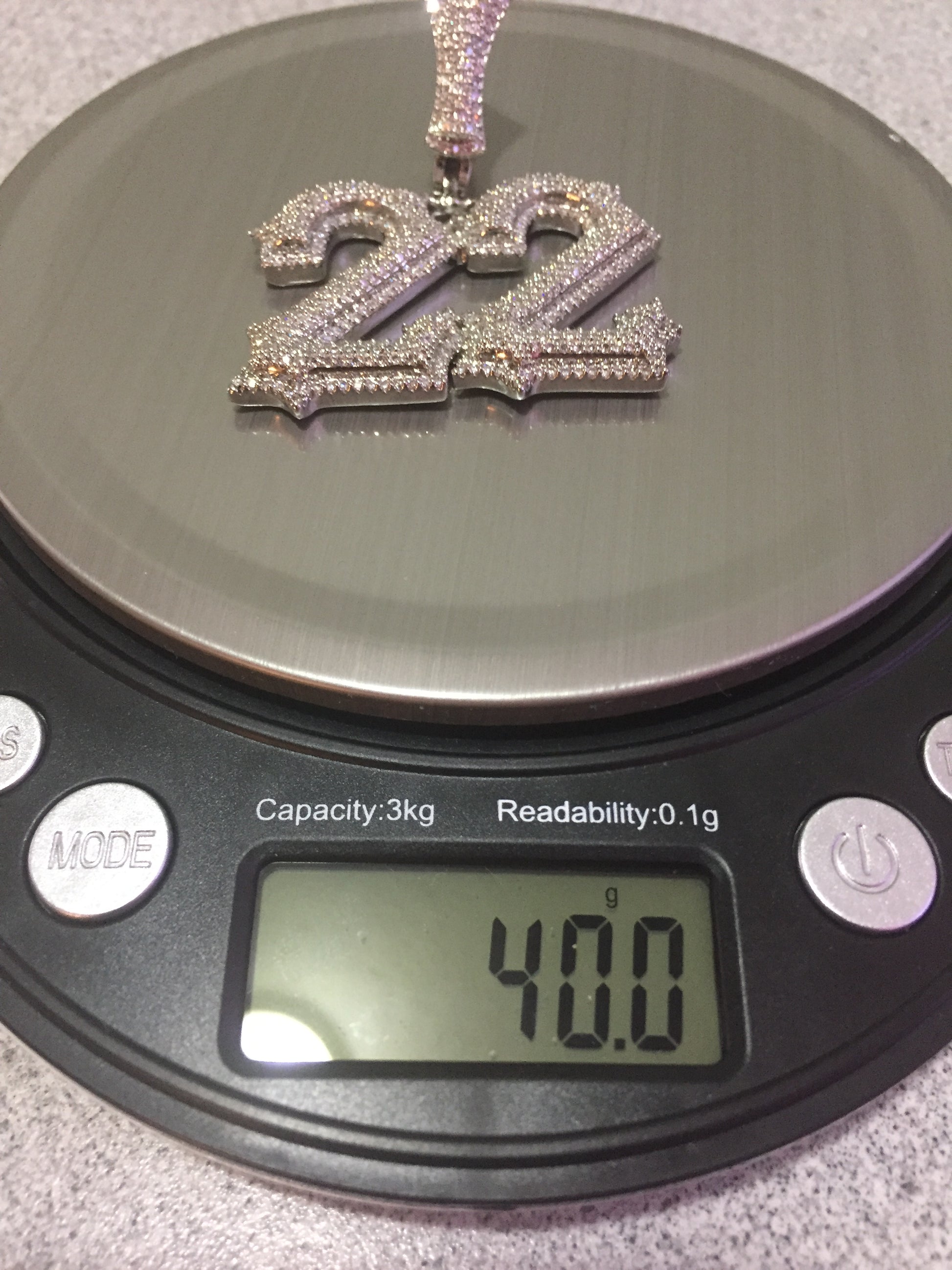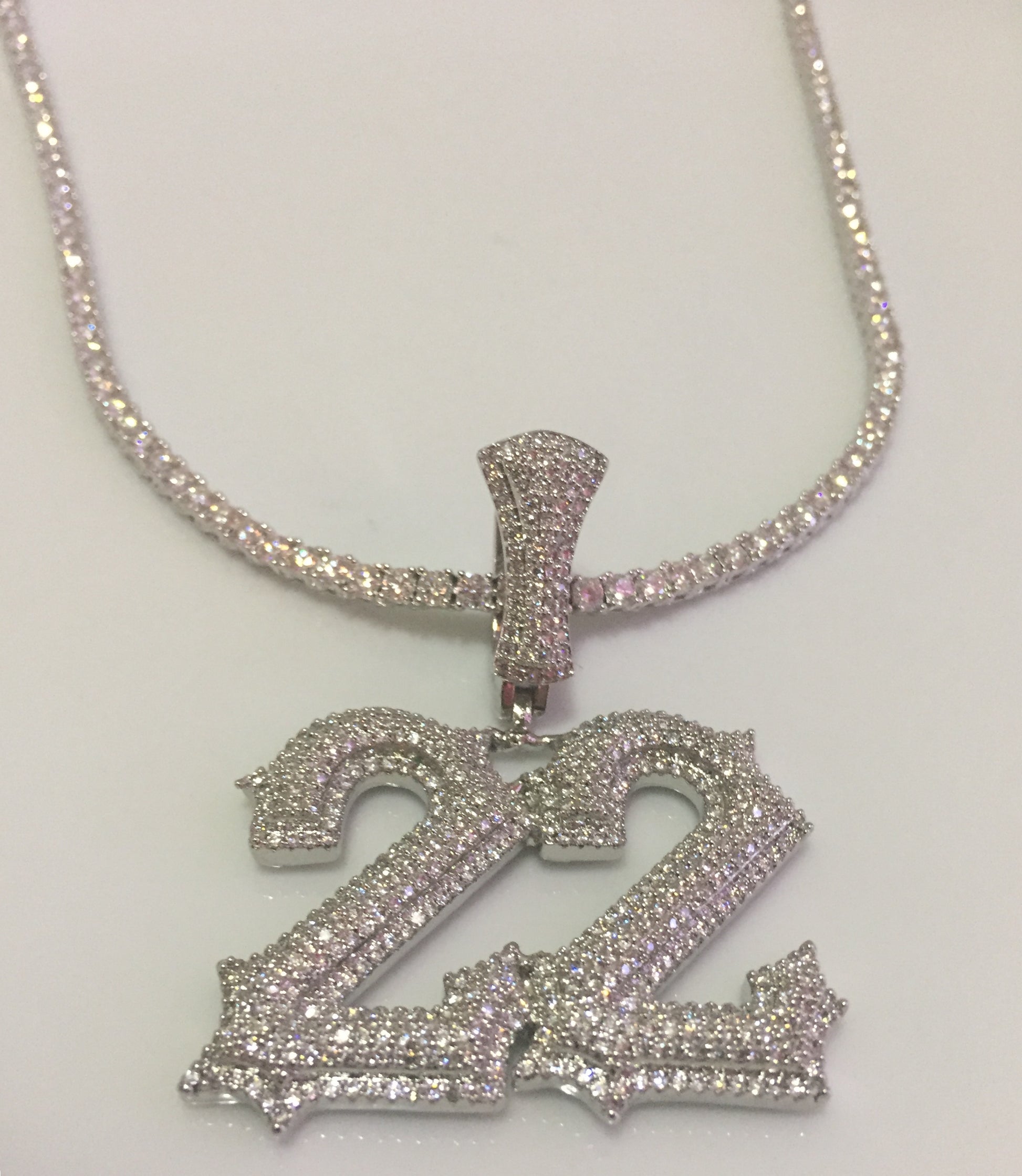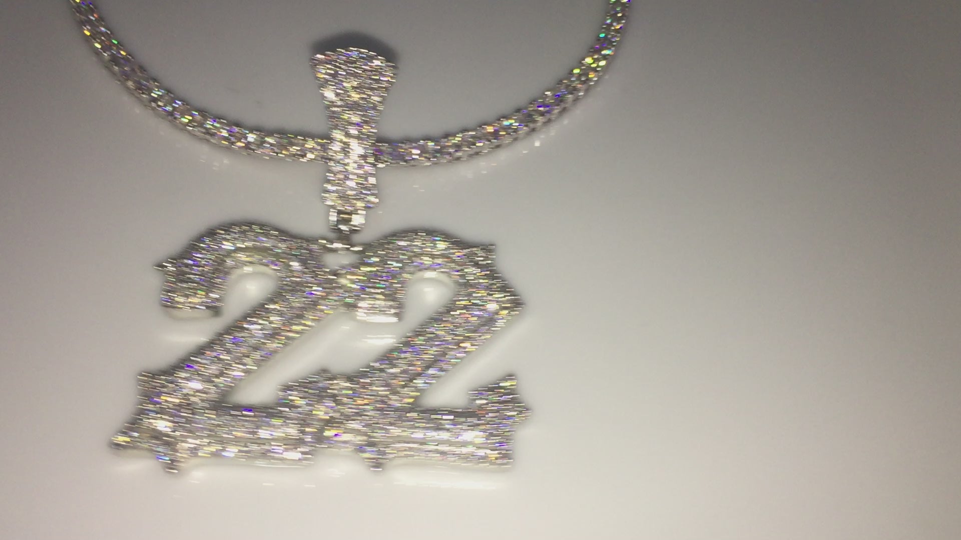 Medium-sized Custom Letter or Number Pendants in a Gothic Script style. These pendants dazzle and shimmer with any light! Flooded with small Moissanite stones, and set in solid sterling silver. Get your own letter/number/name!