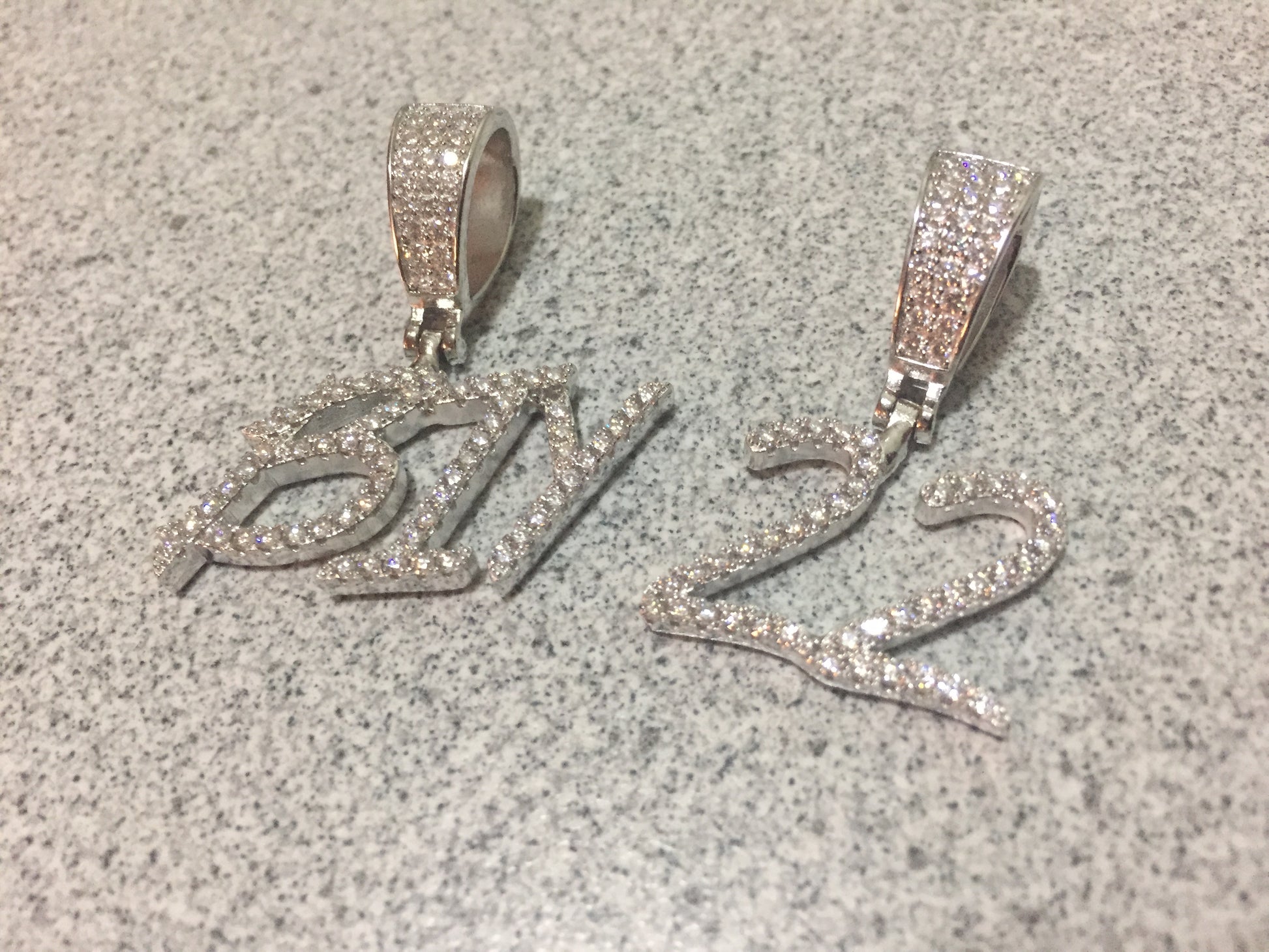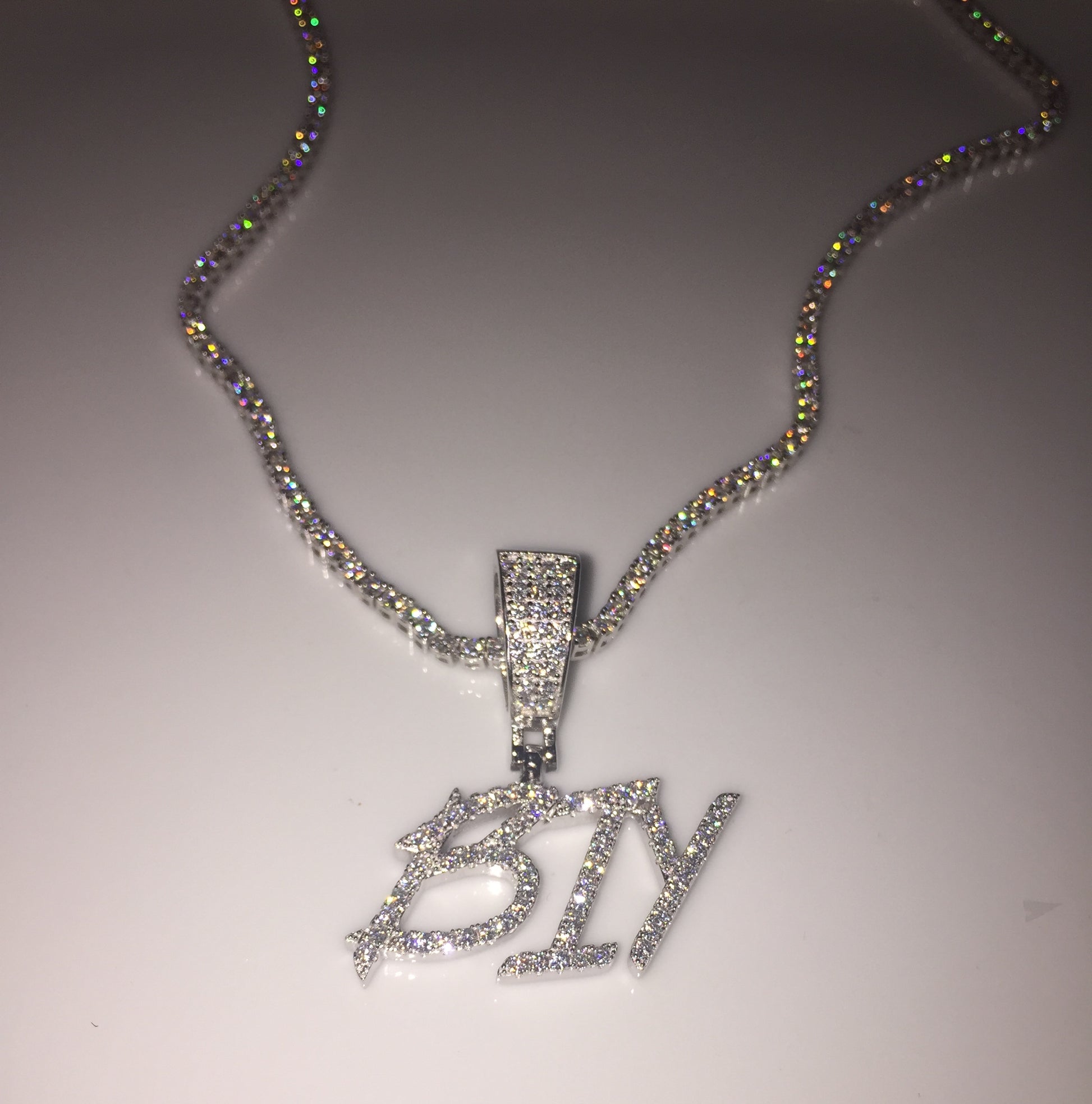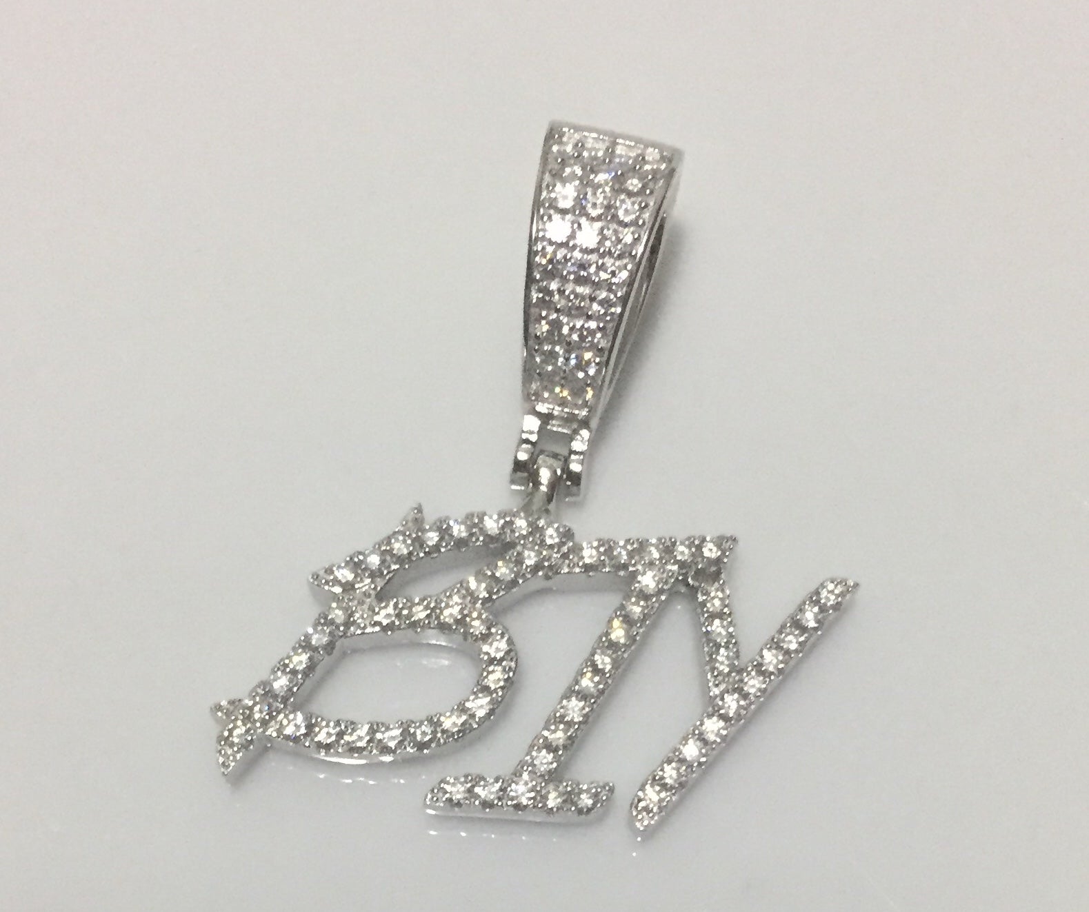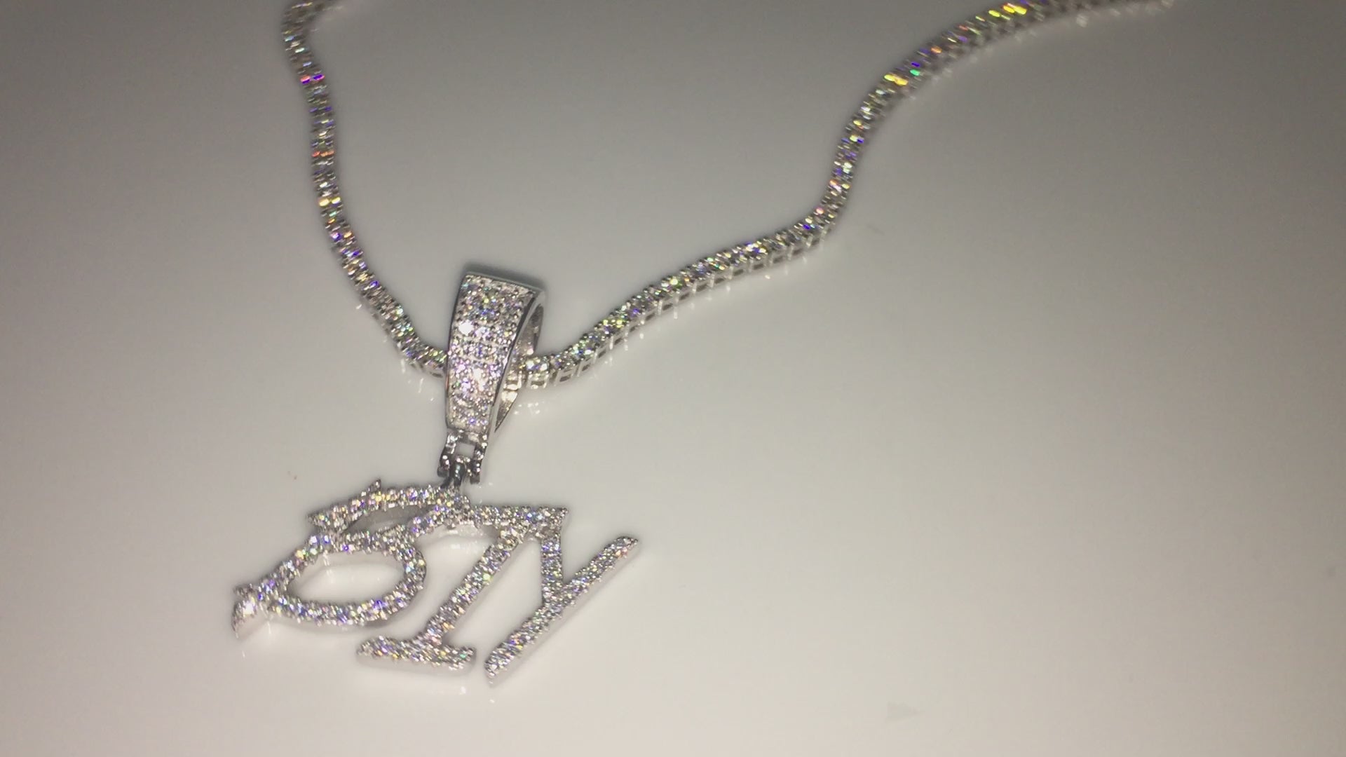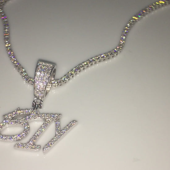 These custom Moissanite letter/number pendants have a unique and modern brush font style. With their size and stone setting, these pendants have the perfect blend of subtle, classy and major shine! Great with a 2mm Moissanite tennis chain or 2.8mm Rope chain.