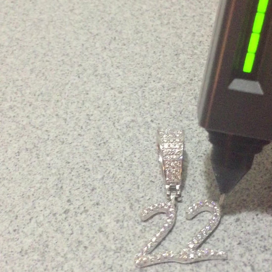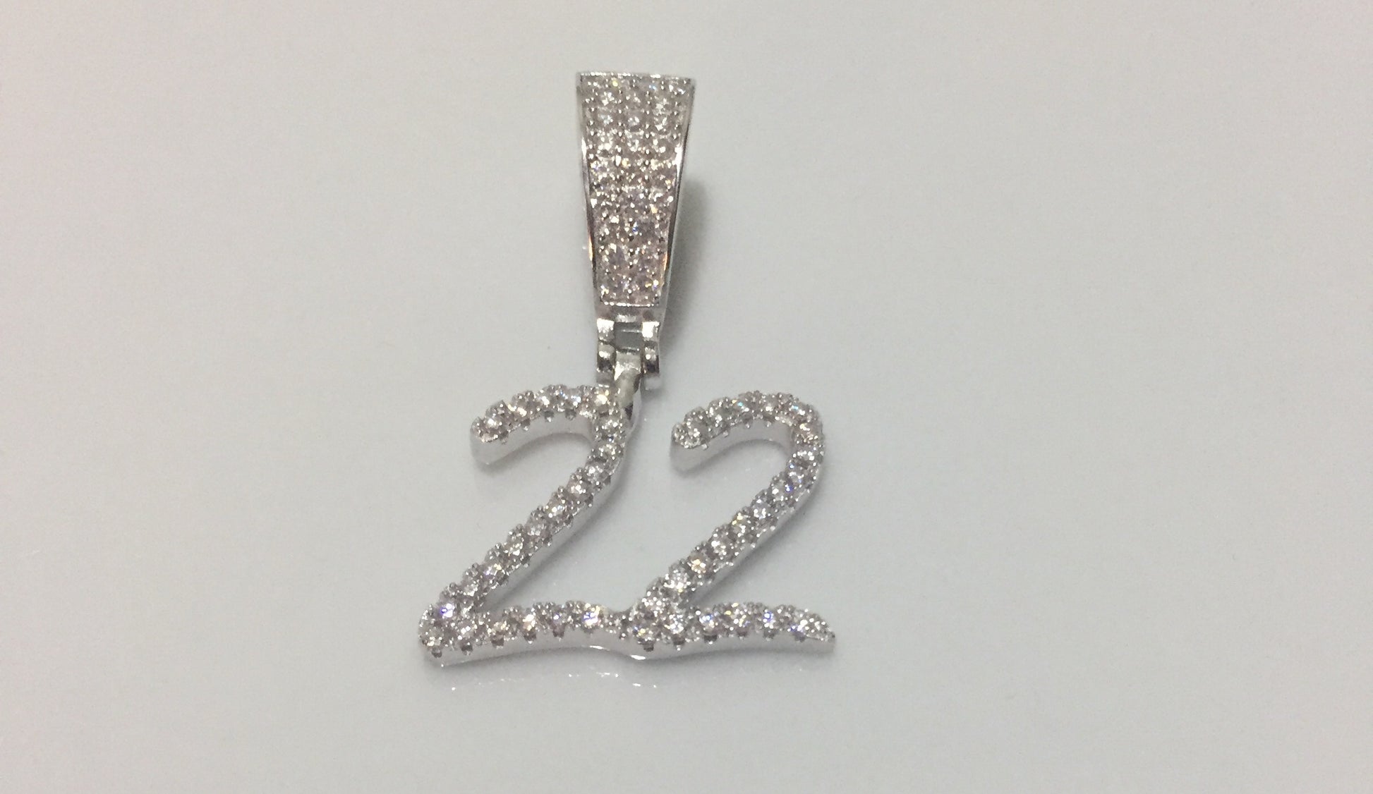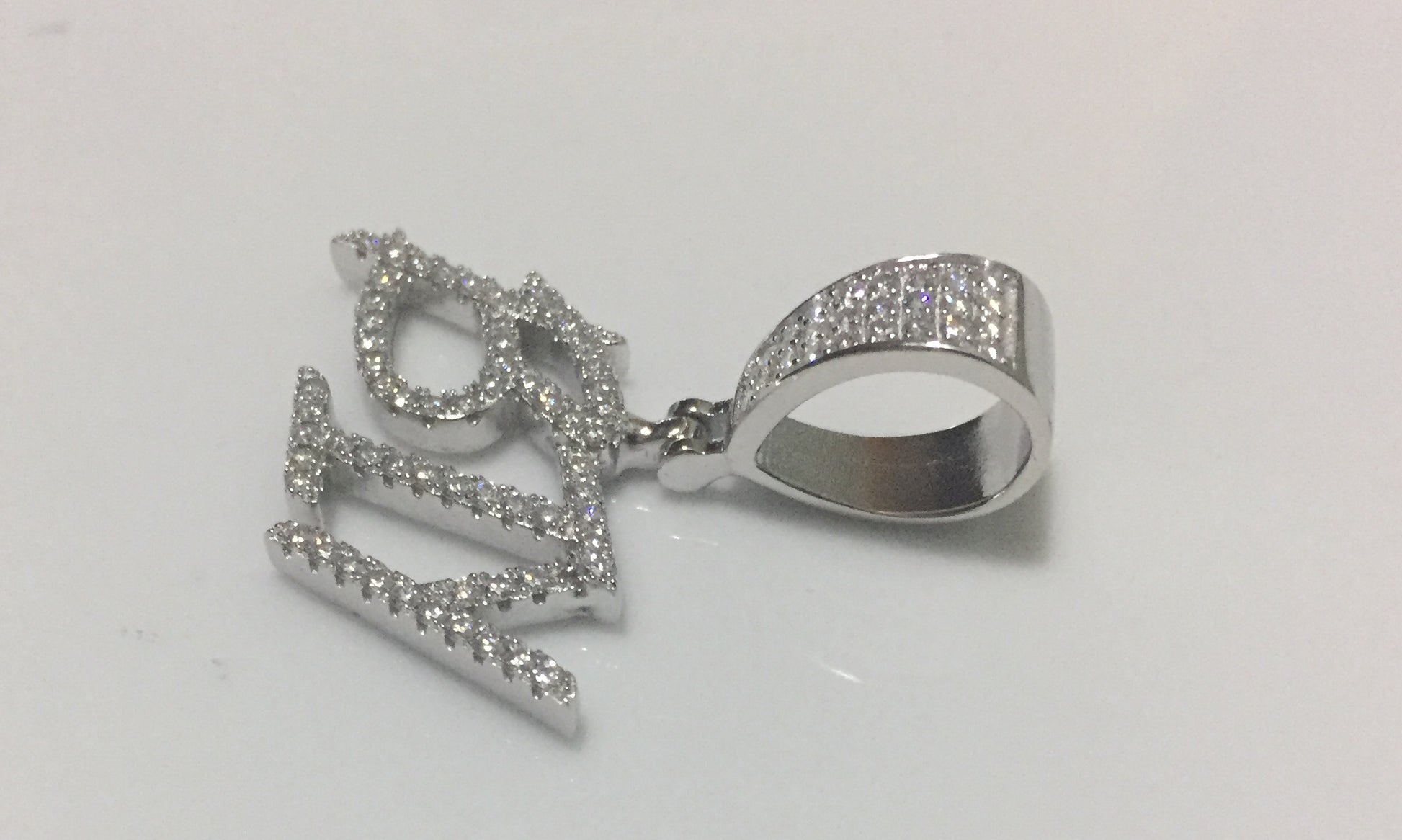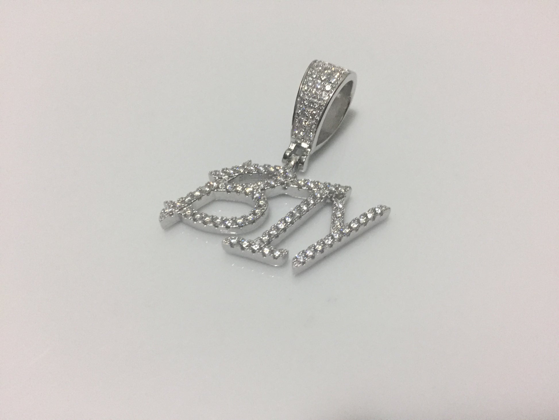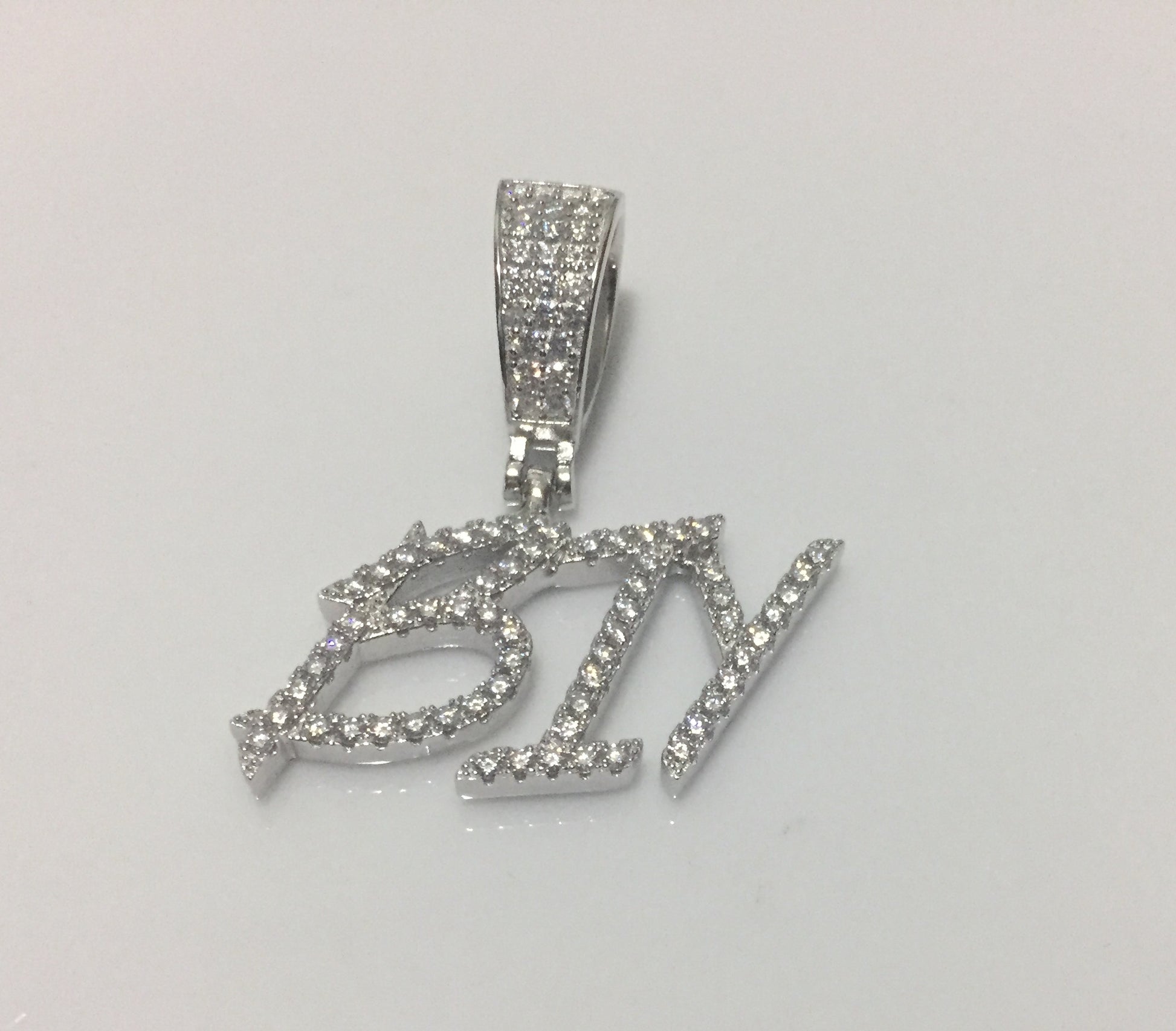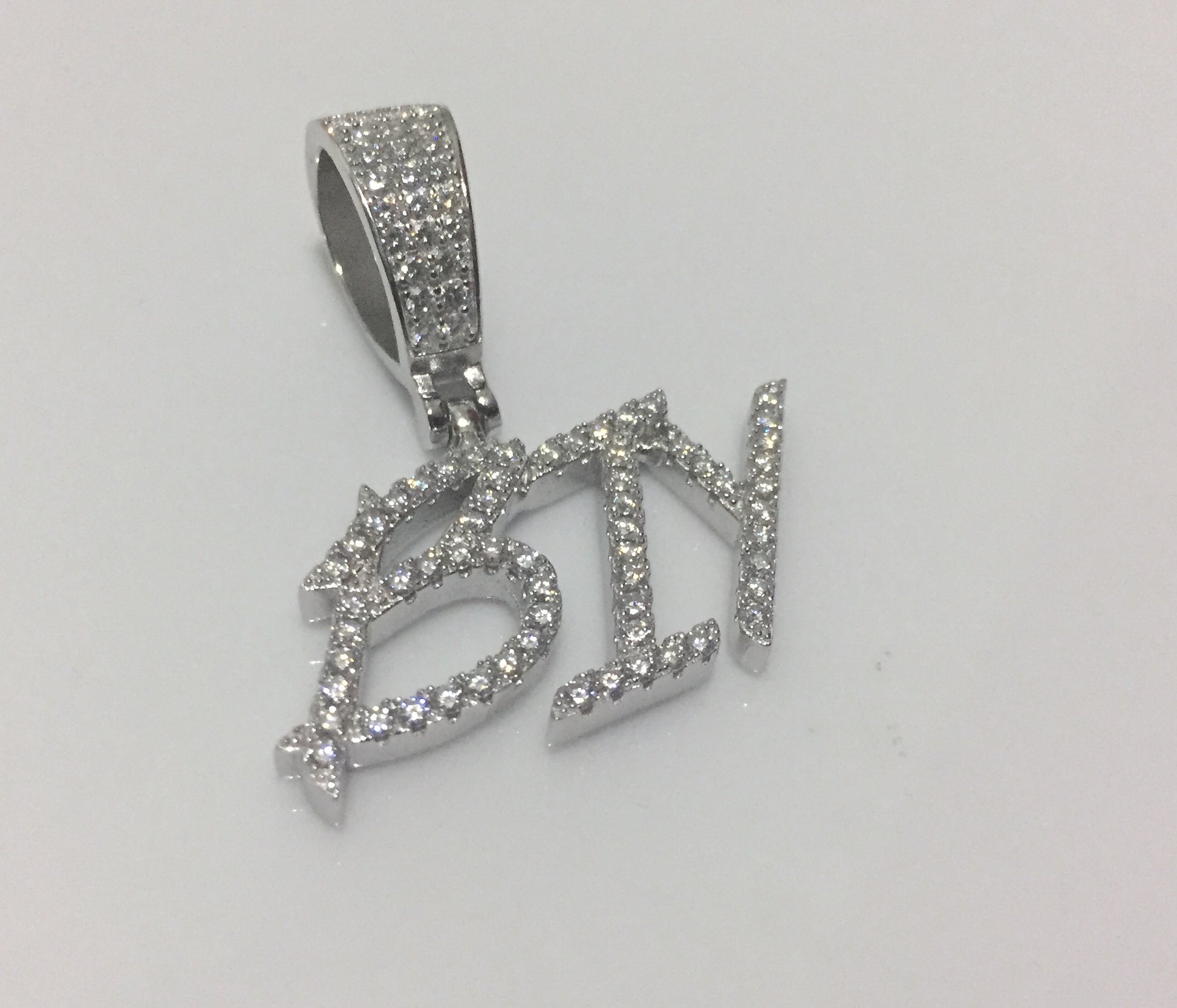 These custom Moissanite letter/number pendants have a unique and modern brush font style. With their size and stone setting, these pendants have the perfect blend of subtle, classy and major shine! Great with a 2mm Moissanite tennis chain or 2.8mm Rope chain.