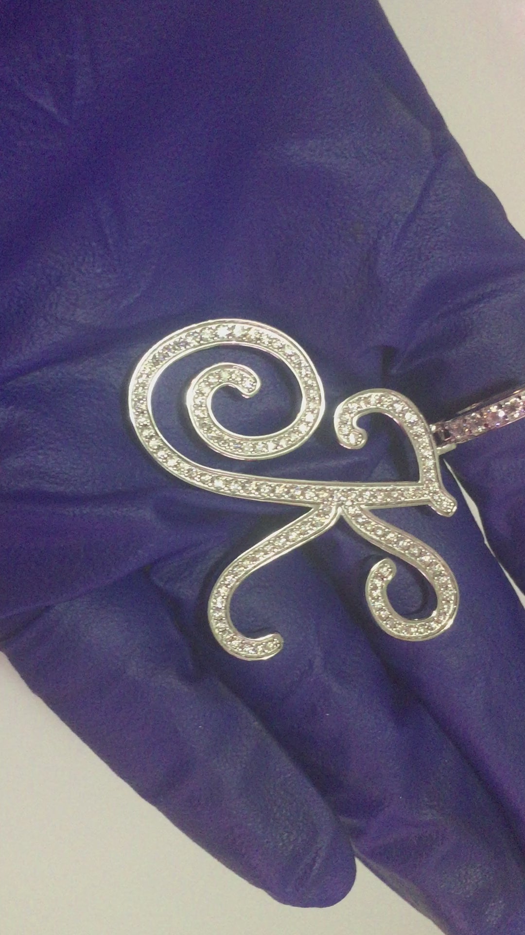 These letter pendants have 1.5mm Moissanite stones to add a beautiful sparkle. With a solid back, these sterling silver pendants have a good, solid weight to them.