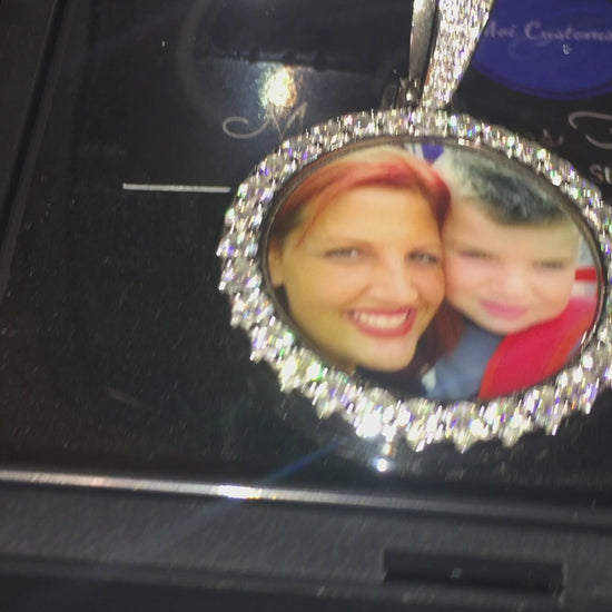 Get a picture of your loved one or any other photo placed inside this sparkling piece! Engraving available on the back for an extra $10.