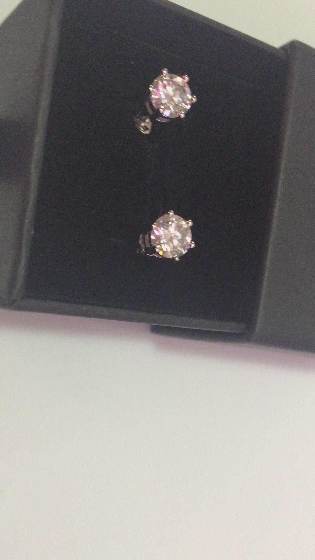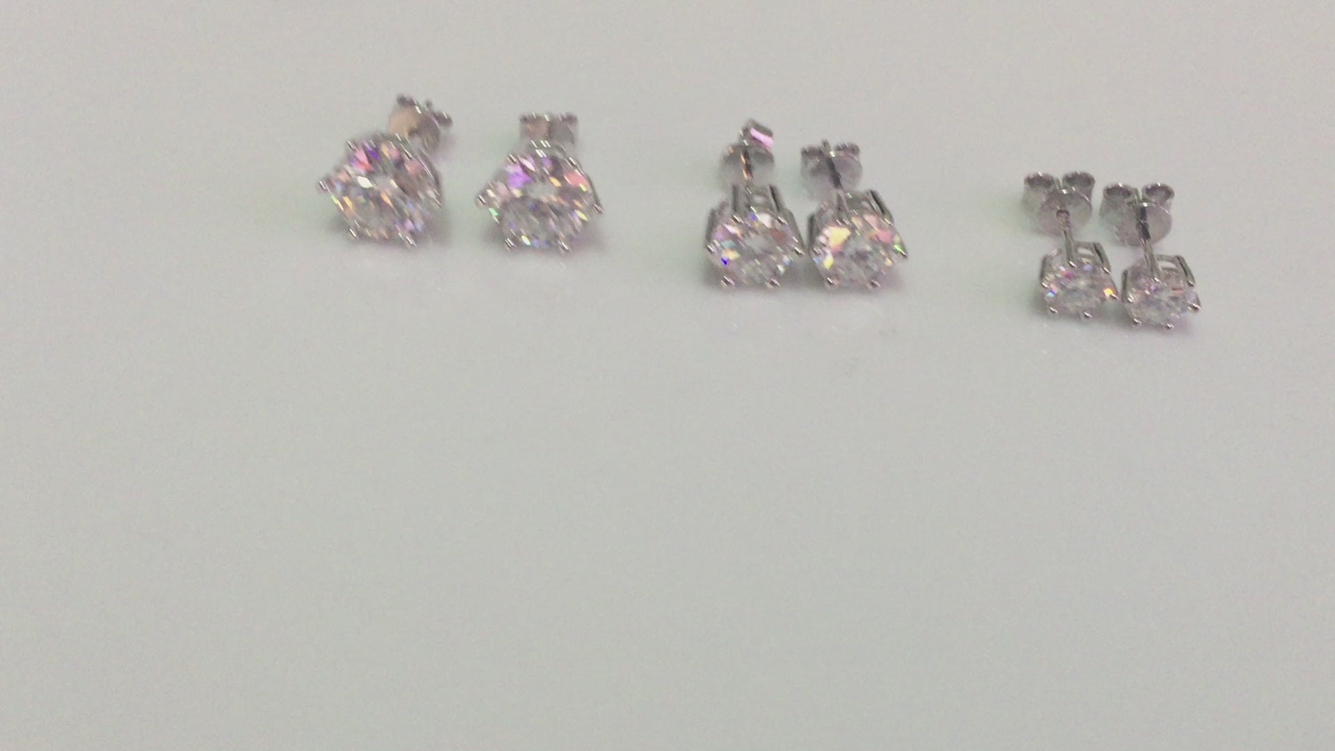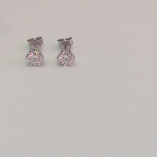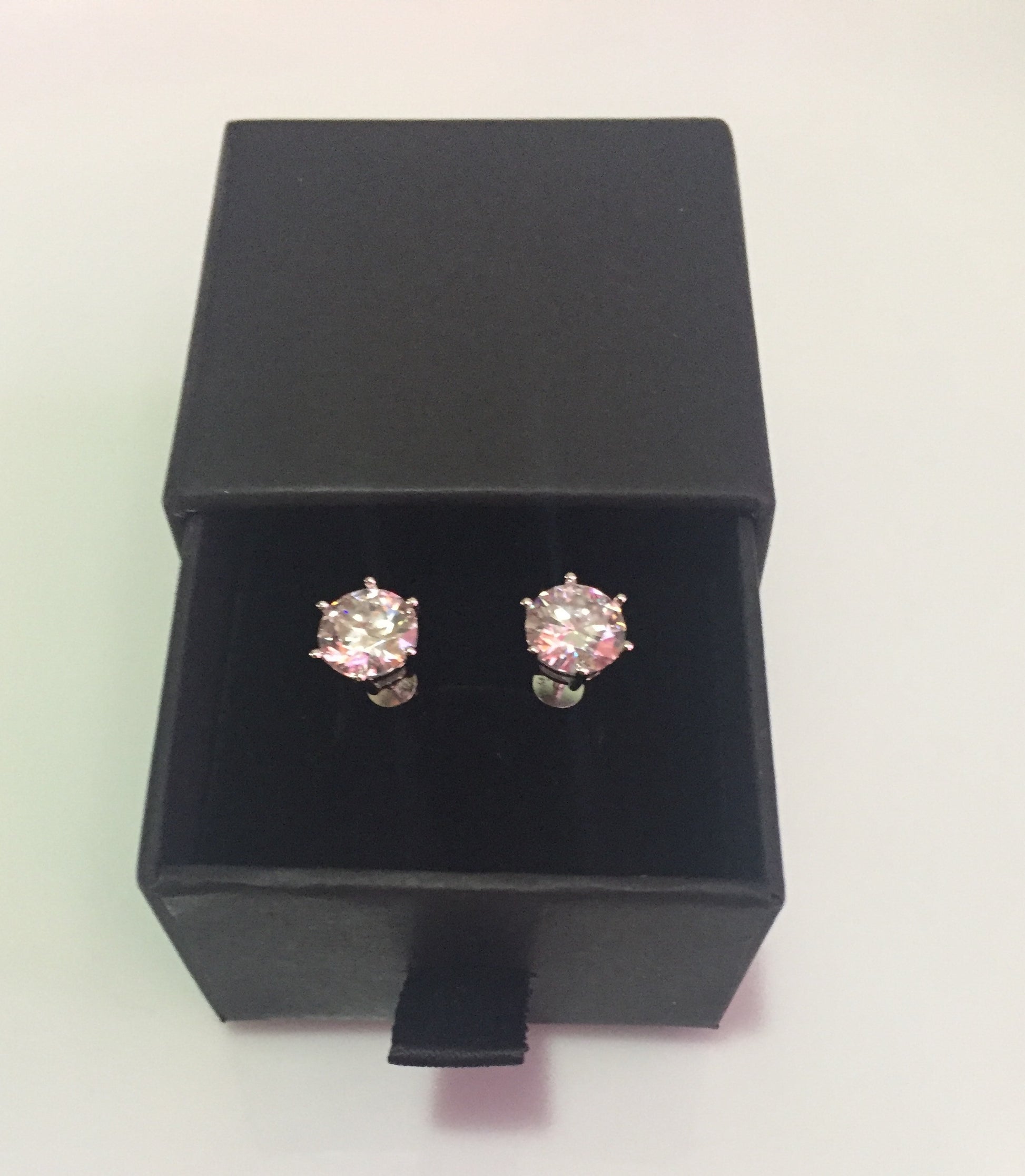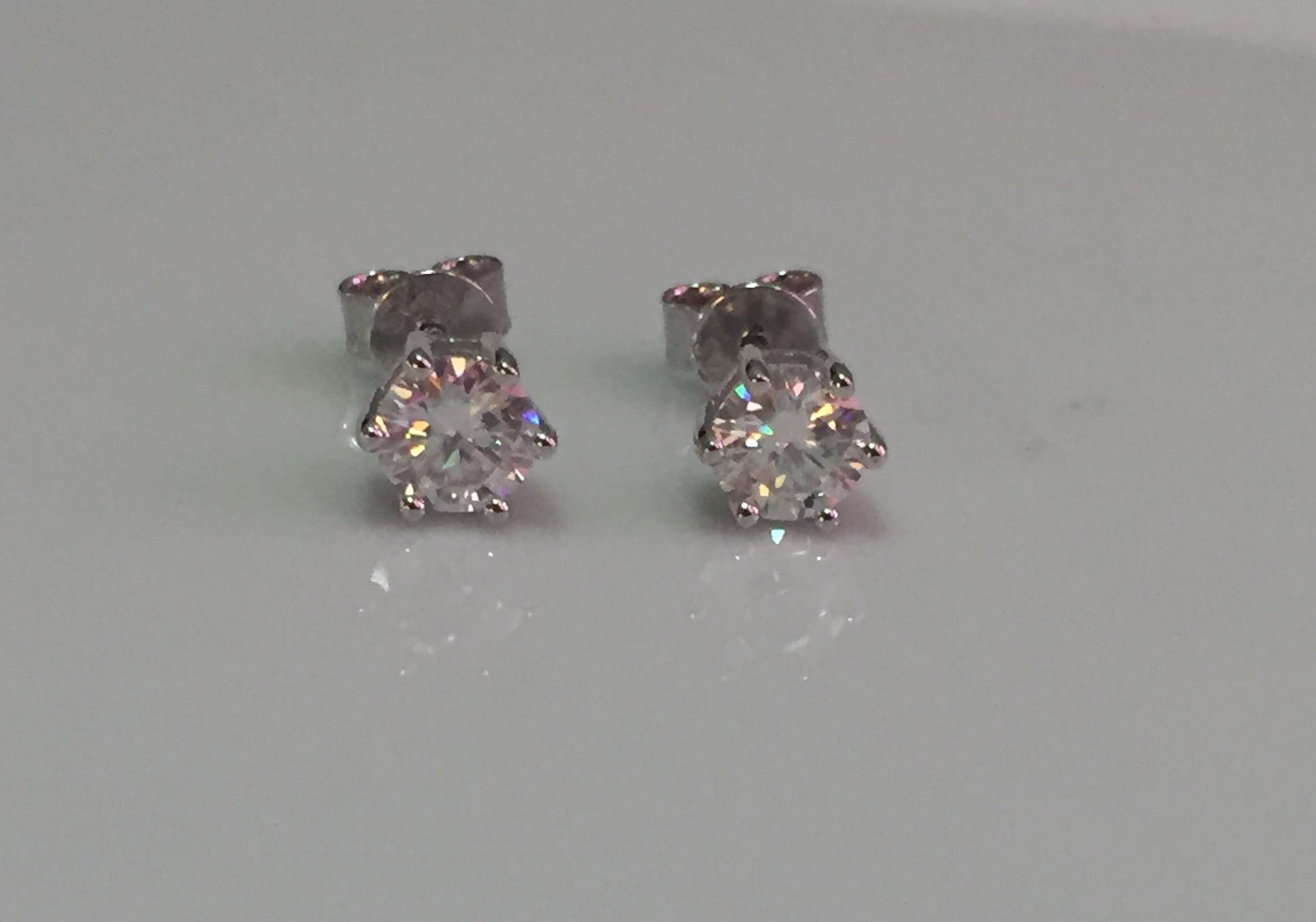 Sparkling Moissanite studs set in 925 Sterling Silver. 6 prong style with pushback closure. 3 sizes available: